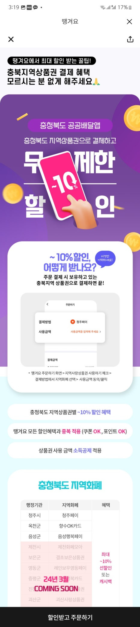 삼성페이로 지역화폐를 사용할 때의 또 다른 장점은 배달앱에서의 사용입니다. 예를 들어, 먹깨비와 땡겨요에서 삼성페이를 통해 지역화폐를 사용할 수 있습니다. 특히, 신한계열의 땡겨요는 인앱 결제가 가능하여 매우 편리합니다.