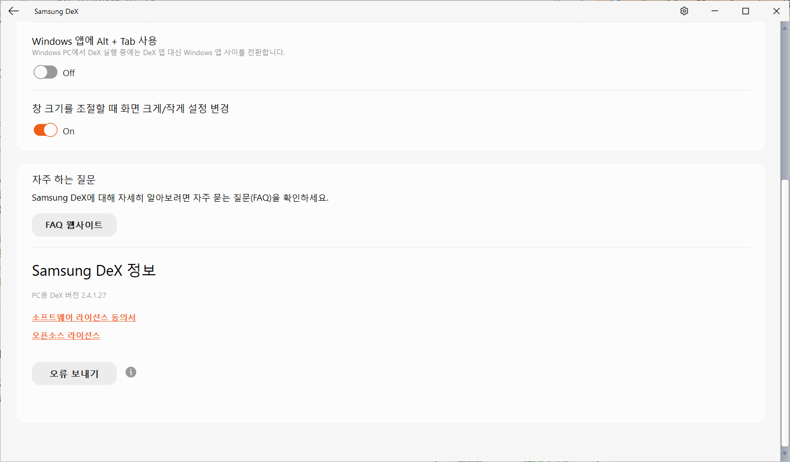 - 기타 앱과의 충돌: 휴대폰에서 "휴대폰과 연결" 앱 실행 중일 경우 DeX 실행 불가.
