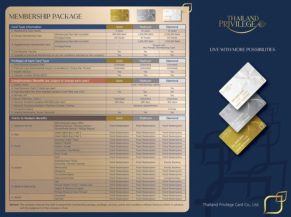 | 🔵 Diamond | 15년 | 55P | 2,500,000 THB | 약 1억 700만 원 | 가족 단위 적합, 포인트 혜택 확대 |