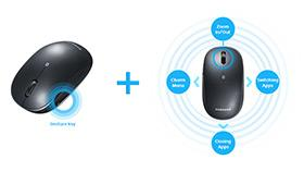 Blue Trace 센서가 채용되어 마우스 패드 없이도 삼성 S 액션 마우스를 컨트롤 할 수 있으며, 다양한 표면에서 원활하게 작동됩니다.(AA 건전지 1개 사용, Blue Trace 기술은 일부 유리 또는 거울 표면에서 작동하지 않을 수 있습니다.)