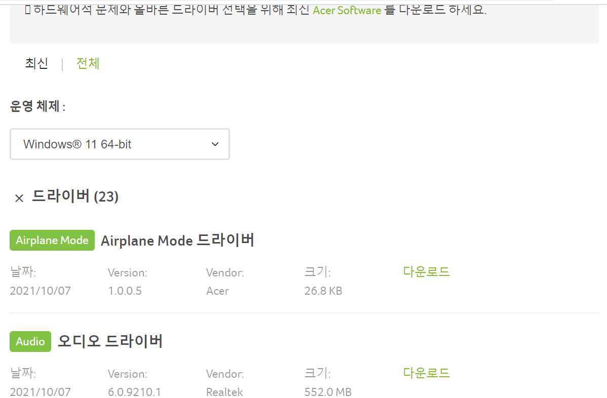 윈도우10인데 윈도우 업데이트로 못잡는 드라이버가 간혹 있는데 이중 하나는