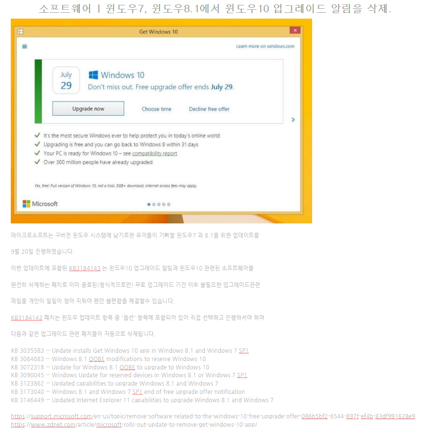 윈도우7, 윈도우8.1에서 윈도우10 업그레이드 알림을 삭제